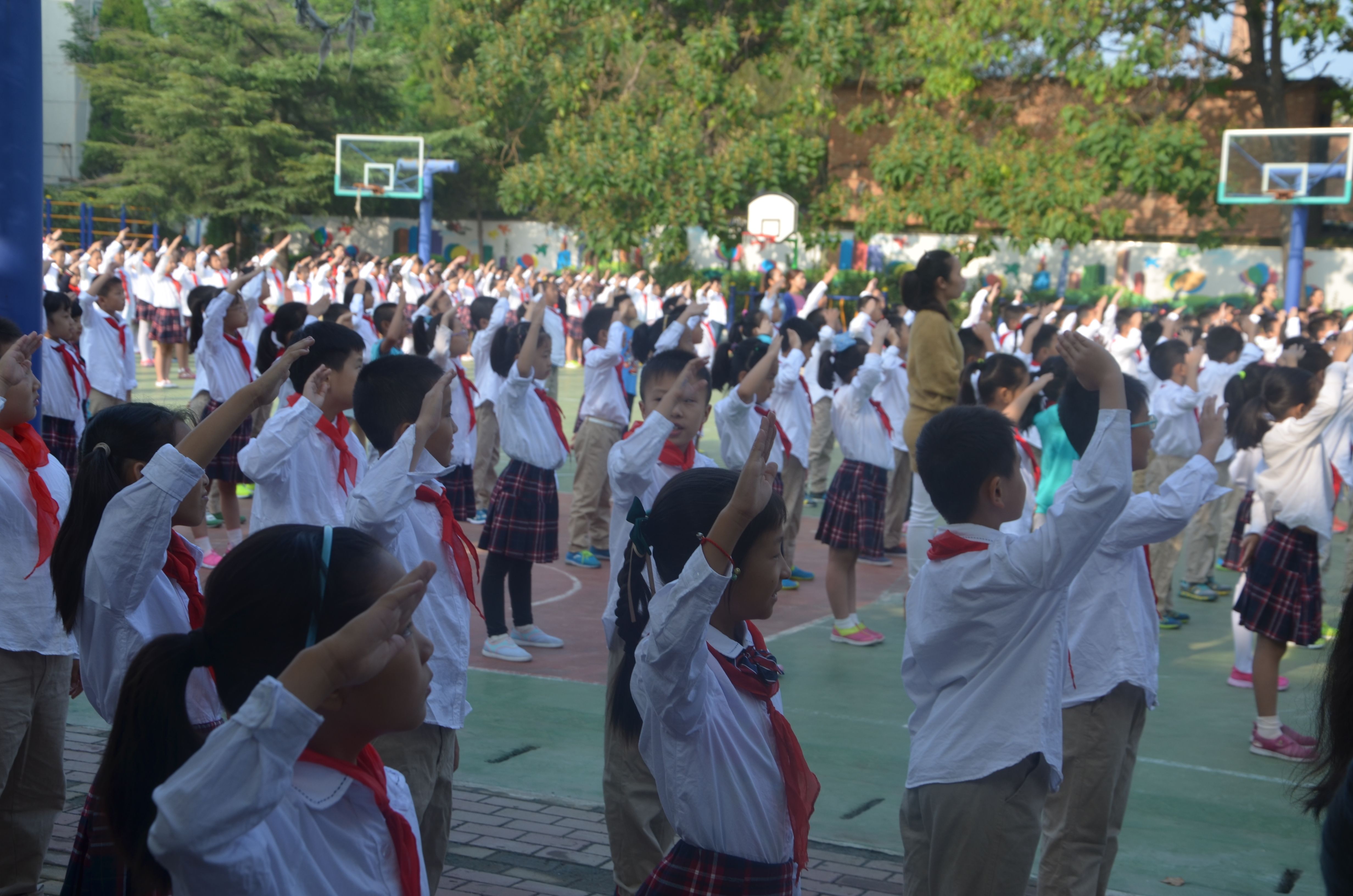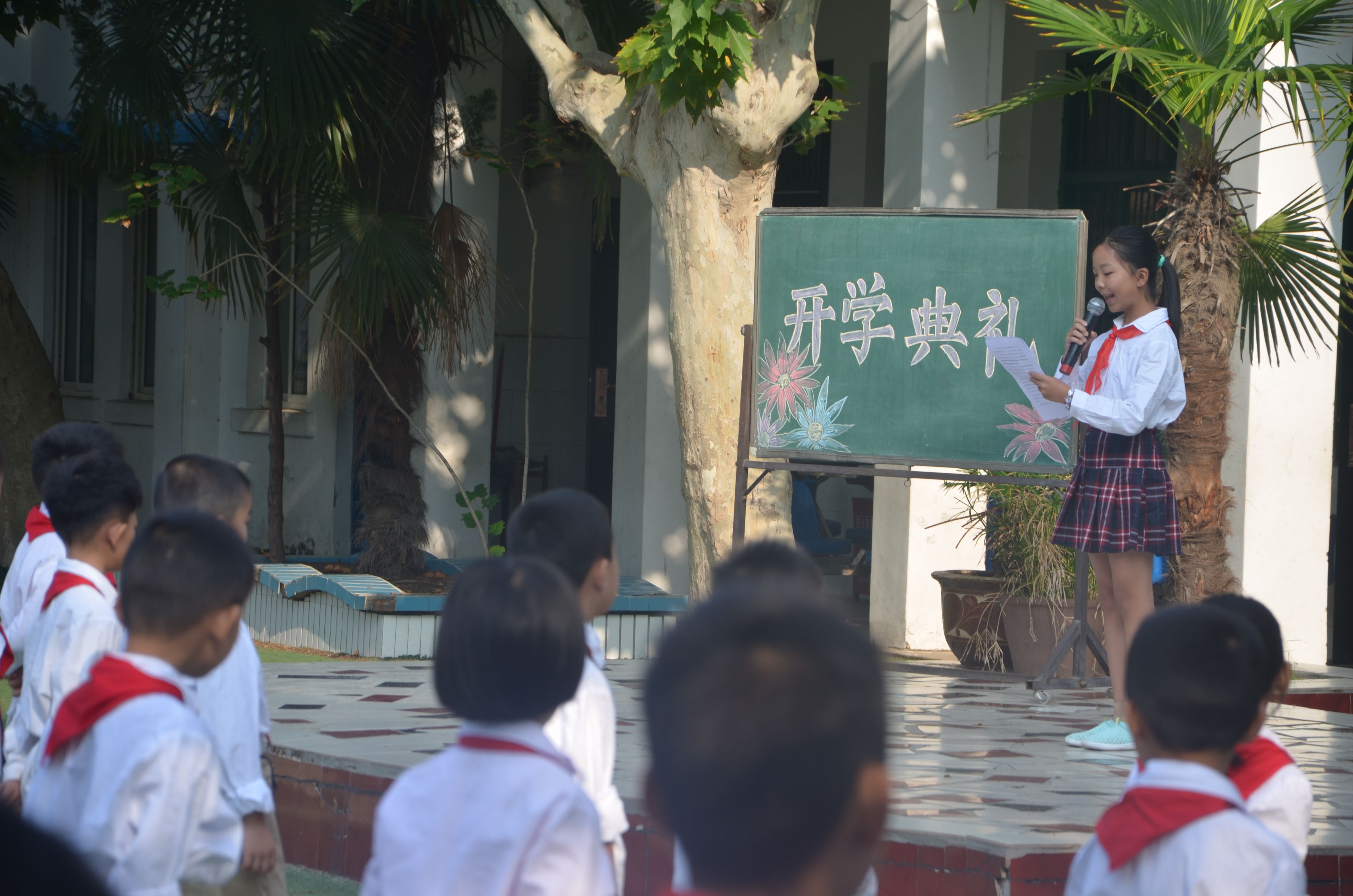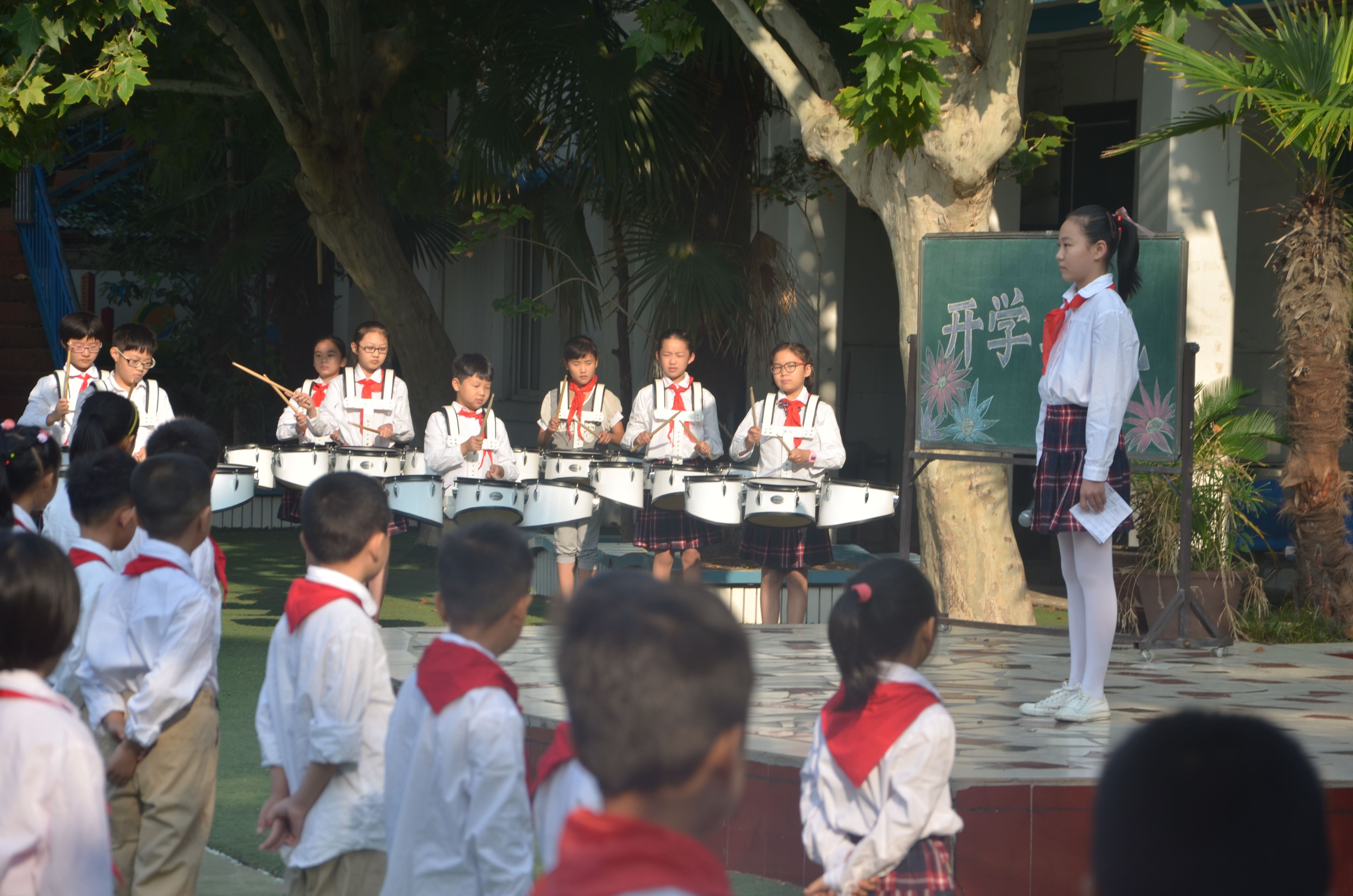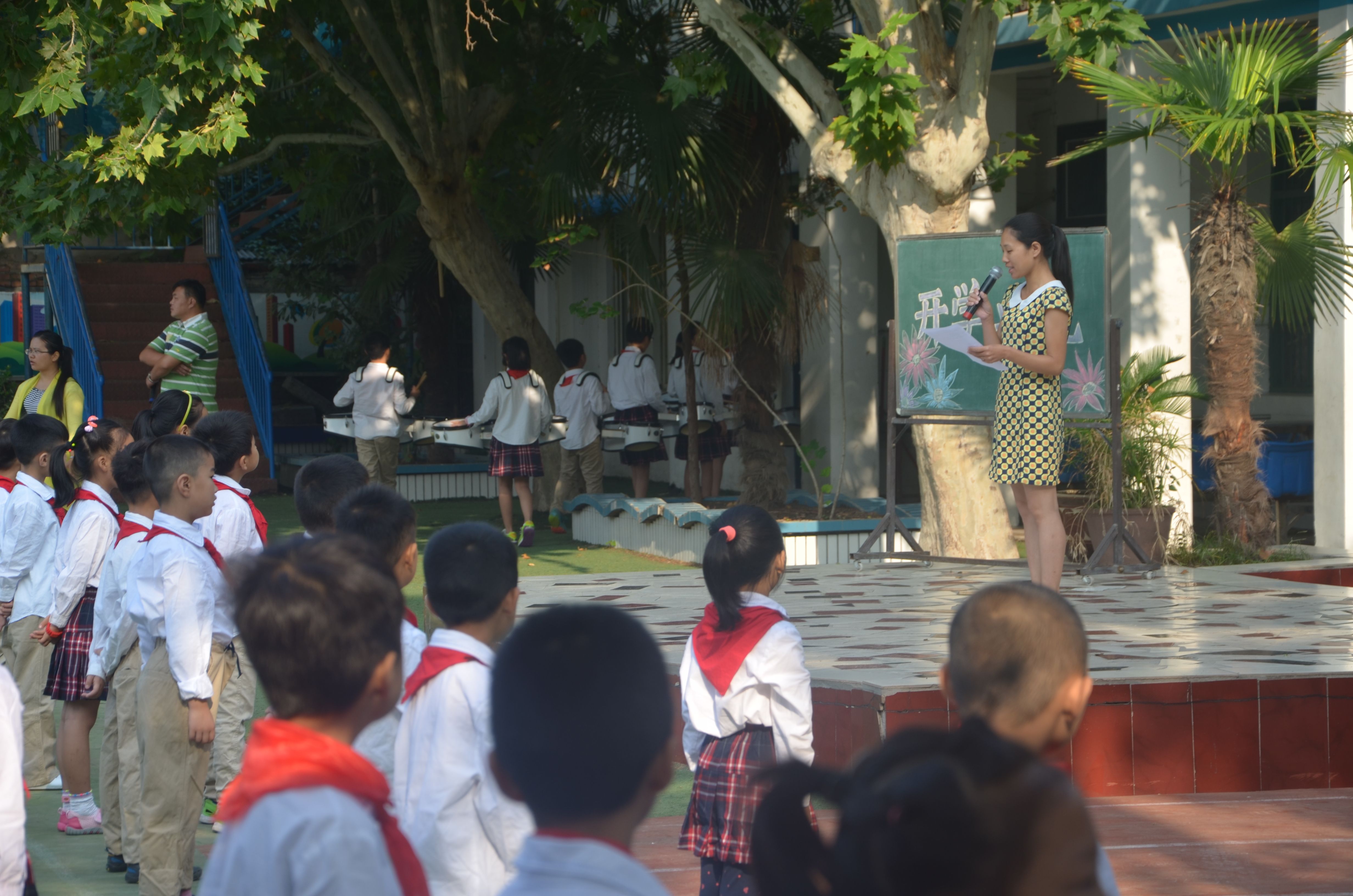 庄严的升旗仪式后,王萍校长首先代表全校师生向一年级新同学表示欢迎,然后向全校同学提出了新的要求:希望高年级同学们爱护校园环境,做好一年级新同学的榜样;希望同学们积极参加各种活动,不断提高自己的能力;要求大家注意自己的一言一行,争做优秀小学生。