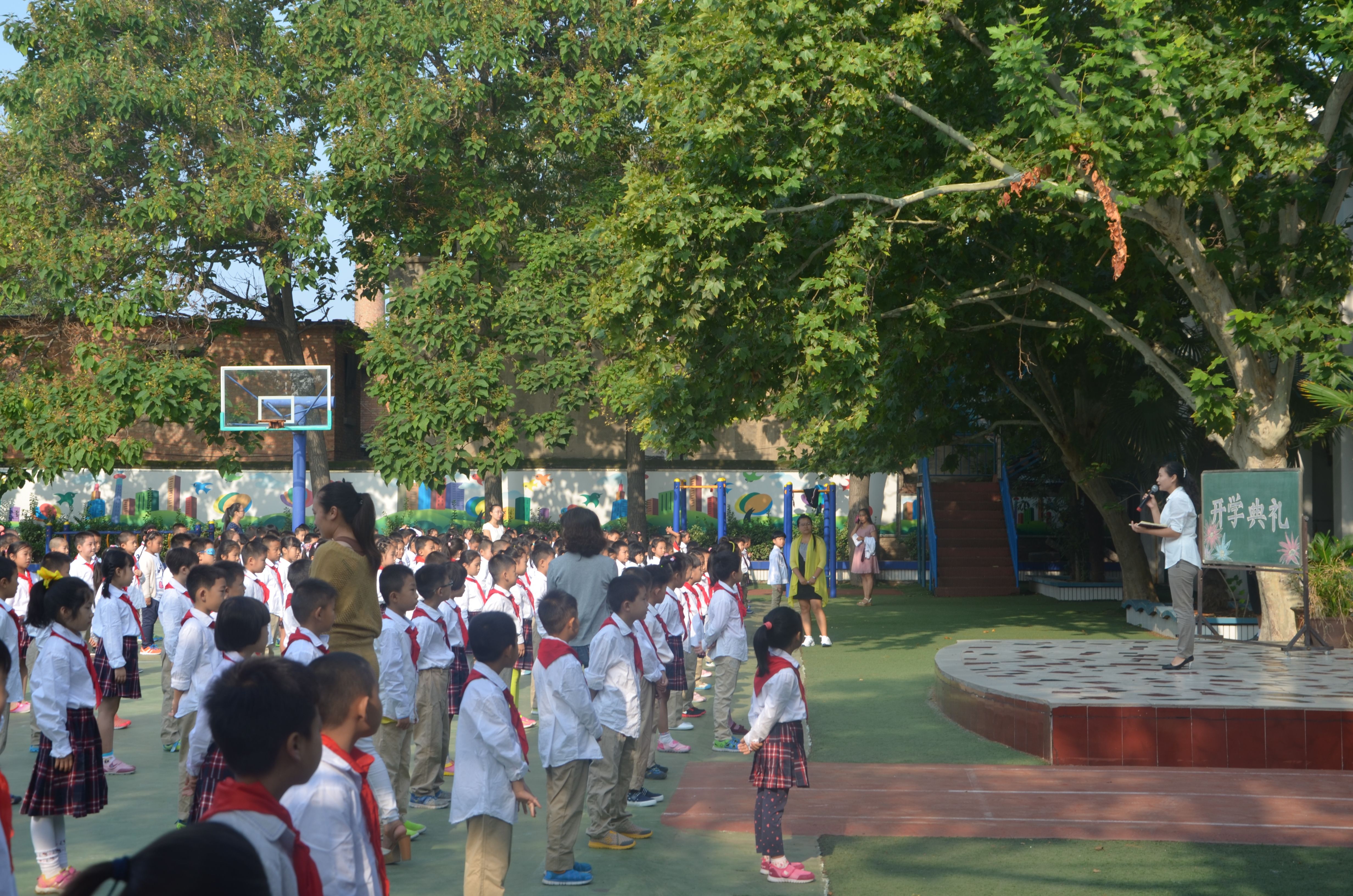 9月1日上午8:00,附小在操场上举行了以“新起点开启新希望”为主题的开学典礼。
