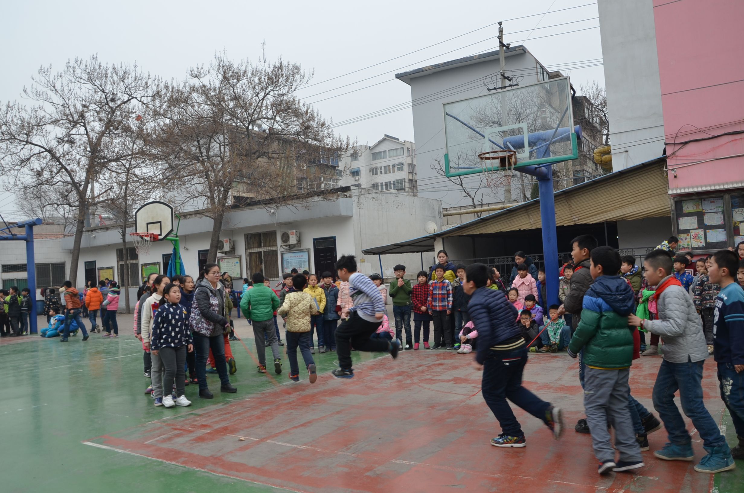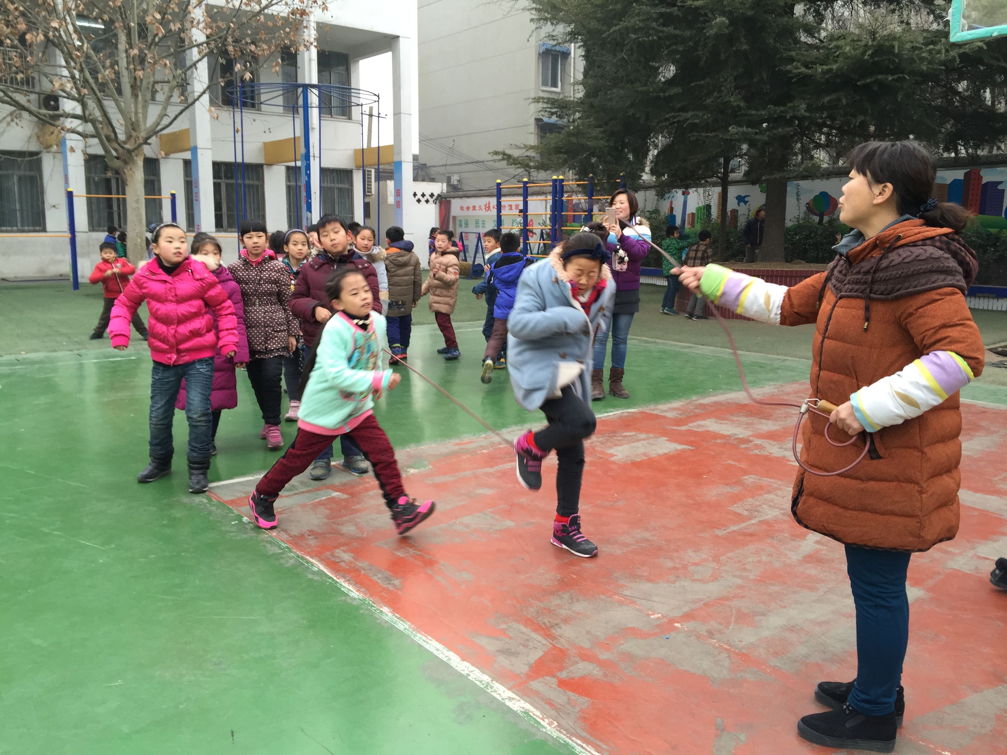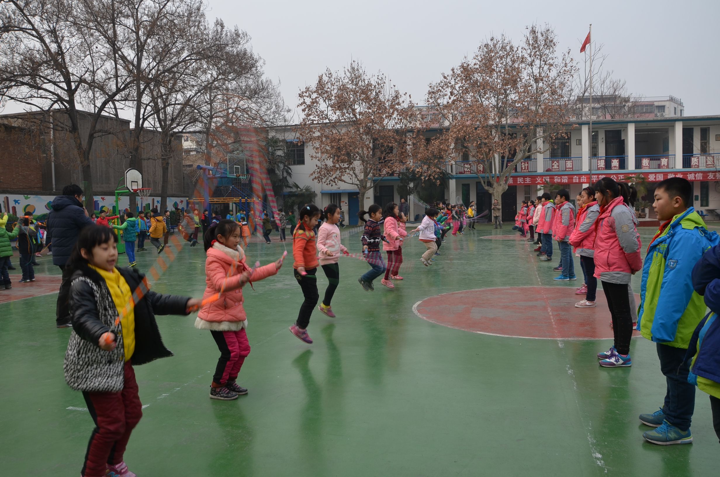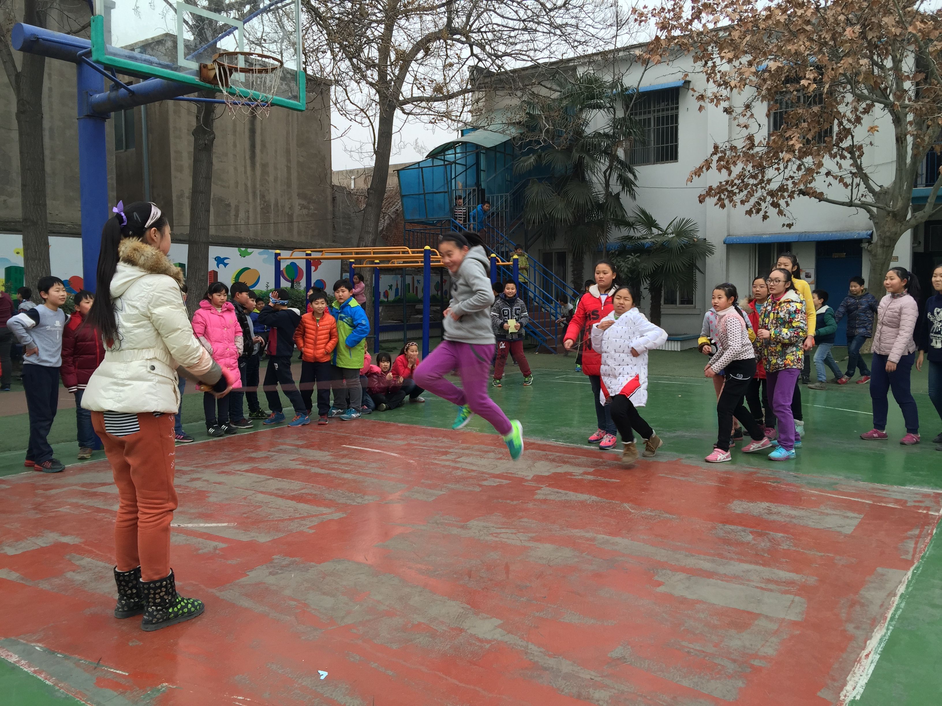 为了认真落实国家阳光体育精神,更好地丰富同学们的课余生活,加强各班同学之间的交流,提高学生身体素质。2016年元月6---7日河南大学附属小学举行了一次大型跳绳比赛活动,此次比赛分一二年级短绳比赛,三-----六年级长绳比赛,共有400余名同学参加了本次比赛。