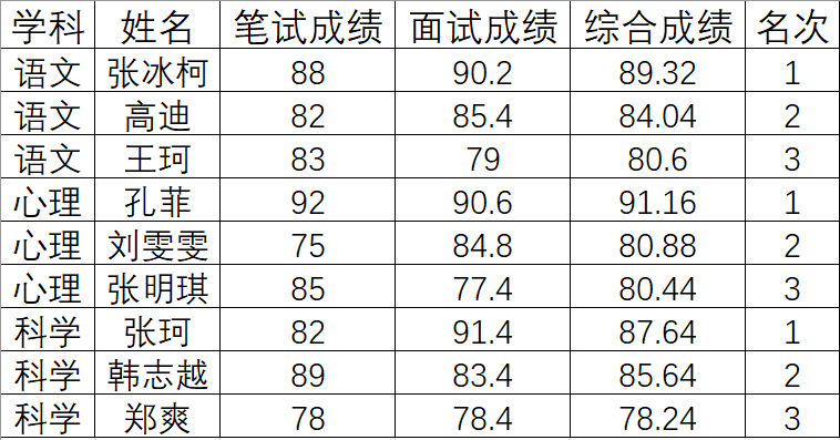 河南大学附属小学2019年公开招聘考试综合总成绩公示