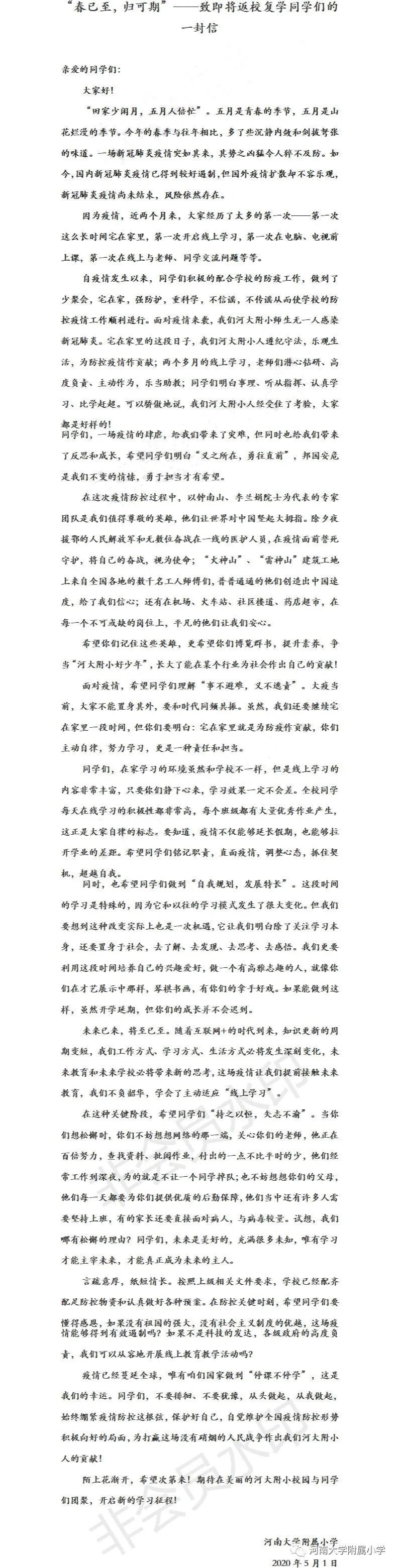 最近,河南省教育厅和各地市教育局发出通知,各地中小学开始逐步返校复学。结合我校实际情况,四、五、六年级学生拟定于5月6日返校复学,我们回到校园的日子越来越近了,你是不是特别高兴呢?那你做好充分的准备了吗?给同学们推荐一份返校复学攻略。你准备好了吗?