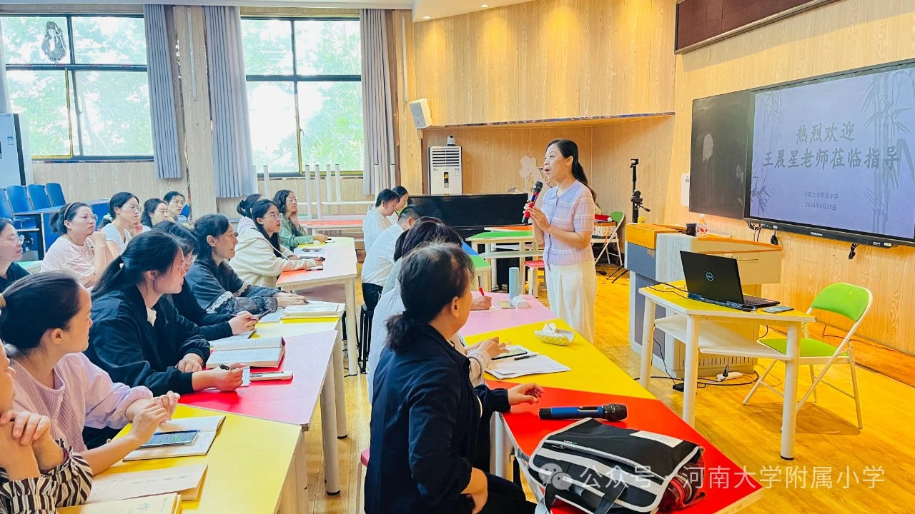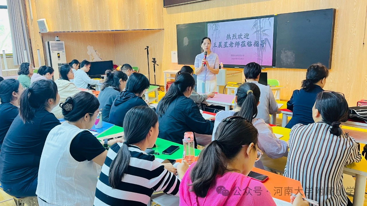 聚焦新课标,蓄力新课堂。为进一步增强语文学科教师研读课标的能力,系统掌握学段、学科教材的知识体系,促进教师专业化发展,2024年9月26日上午,河南大学附属小学特邀开封市教育科学研究院小学语文教研员王晨星老师到校做《研读课标教材 实践反思成长》的语文新课标专题讲座。河南大学附属小学全体语文教师及河南省乡村中小学首席教师领航工作室主持人参加培训。