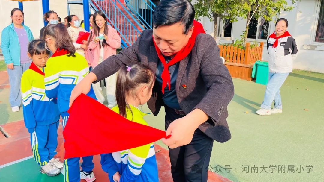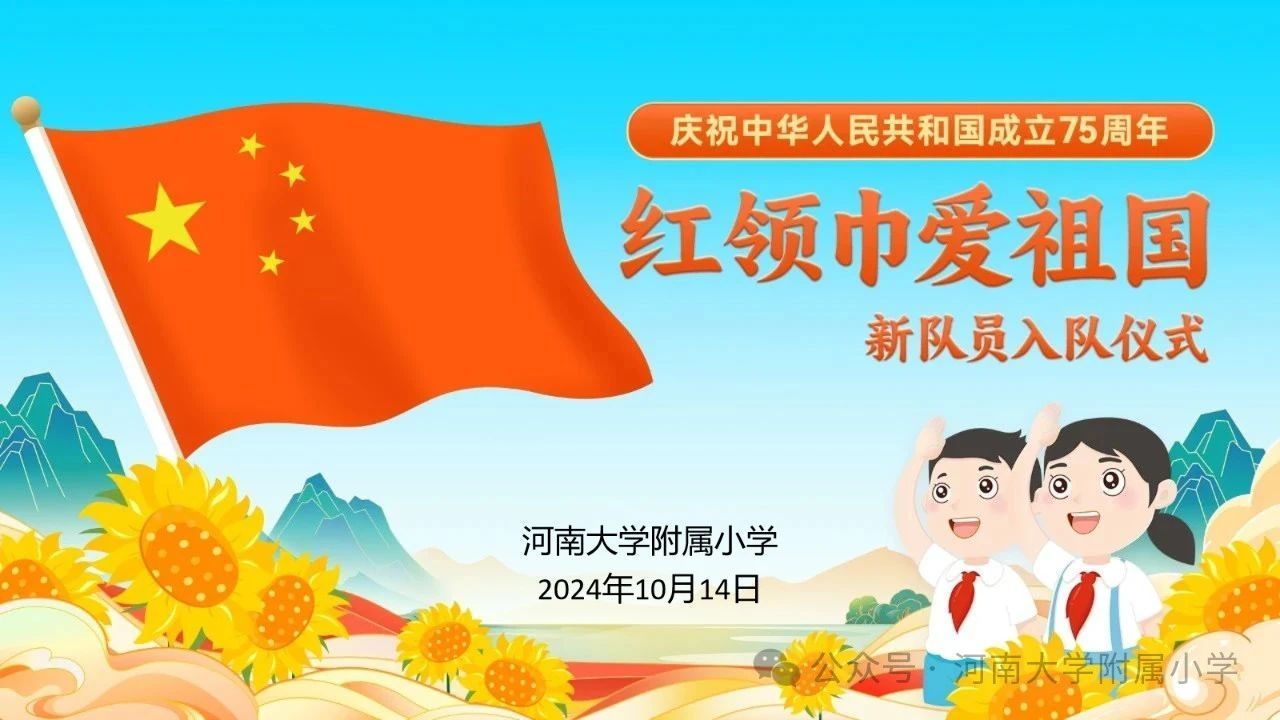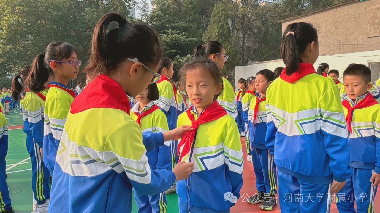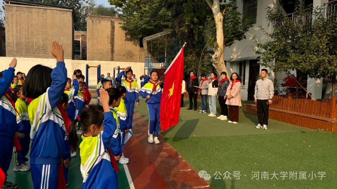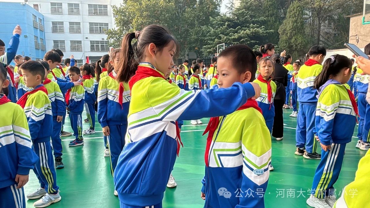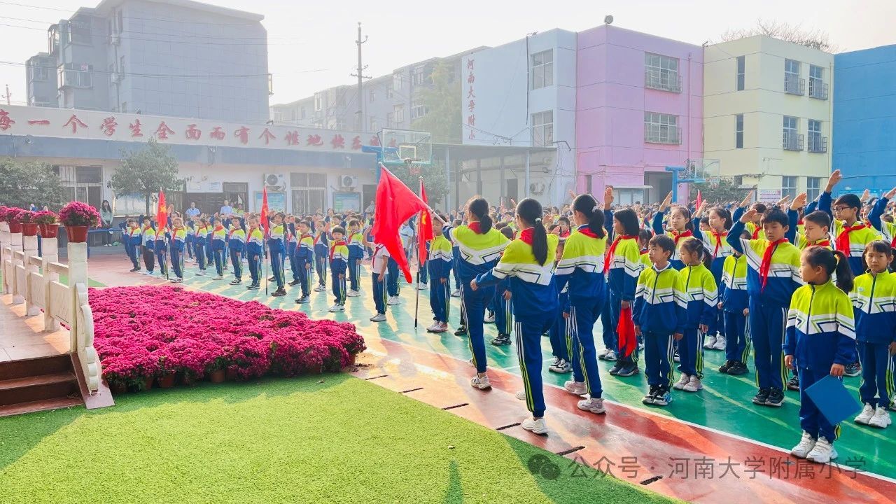 火红的队旗高高飘扬,星星火炬闪耀光芒;我们的号角铿锵响亮,铮铮誓言响彻四方。2024年10月14日,在第75个少先队建队日到来之际,河南大学附属小学举行了“红领巾爱祖国 ”建队日主题活动暨第二批新队员入队仪式。教育引导广大少先队员从小听党话、永远跟党走,用实际行动传承红色基因,增强少先队员的光荣感。