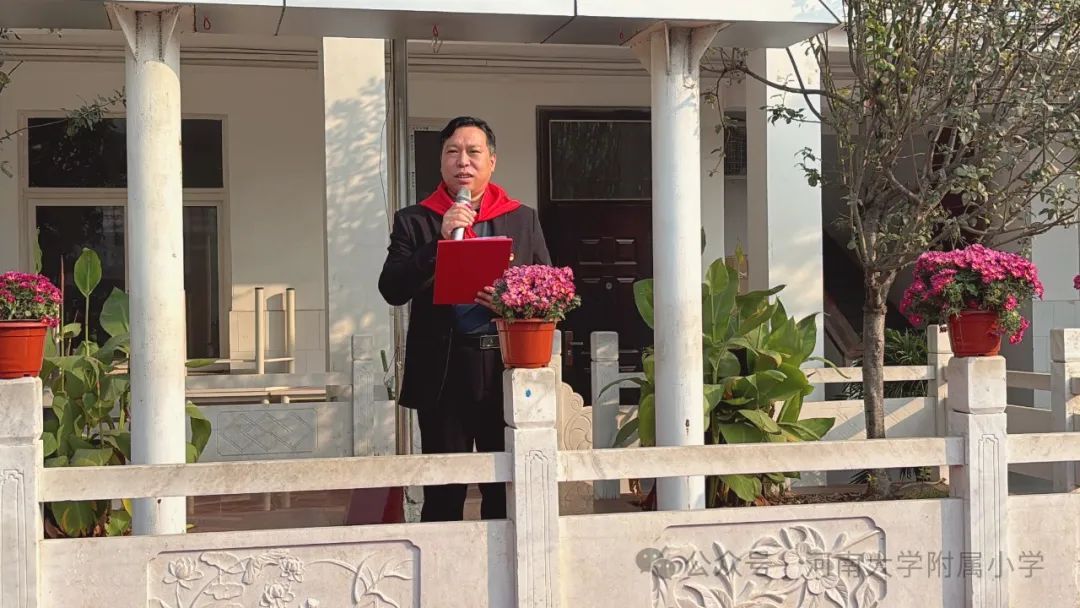 校党支部书记王杰对全体队员亲切寄语。王书记强调:今天,对于新队员们来说,是一个特别的日子,是你们成长道路上的一个重要里程碑。红领巾,不仅仅是一块红色的布片,它是革命先烈鲜血的凝聚,是少先队员身份的象征,更是承载着责任、梦想与荣誉的徽章。从今天起,你们将正式成为少先队的一员,这意味着你们将肩负起“时刻准备着”的使命。最后,他希望全体少先队员努力学习,勇敢前行,用自己的实际行动践行社会主义核心价值观,争做新时代的好队员。