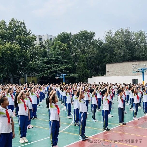 新学年,新面貌,我们将重新启程。筑梦的一砖一瓦在你手中,追梦的一步一印在你脚下。新起点,新未来,我们将再攀高峰。开学典礼由六一中队张意暄和朱柯璟主持。