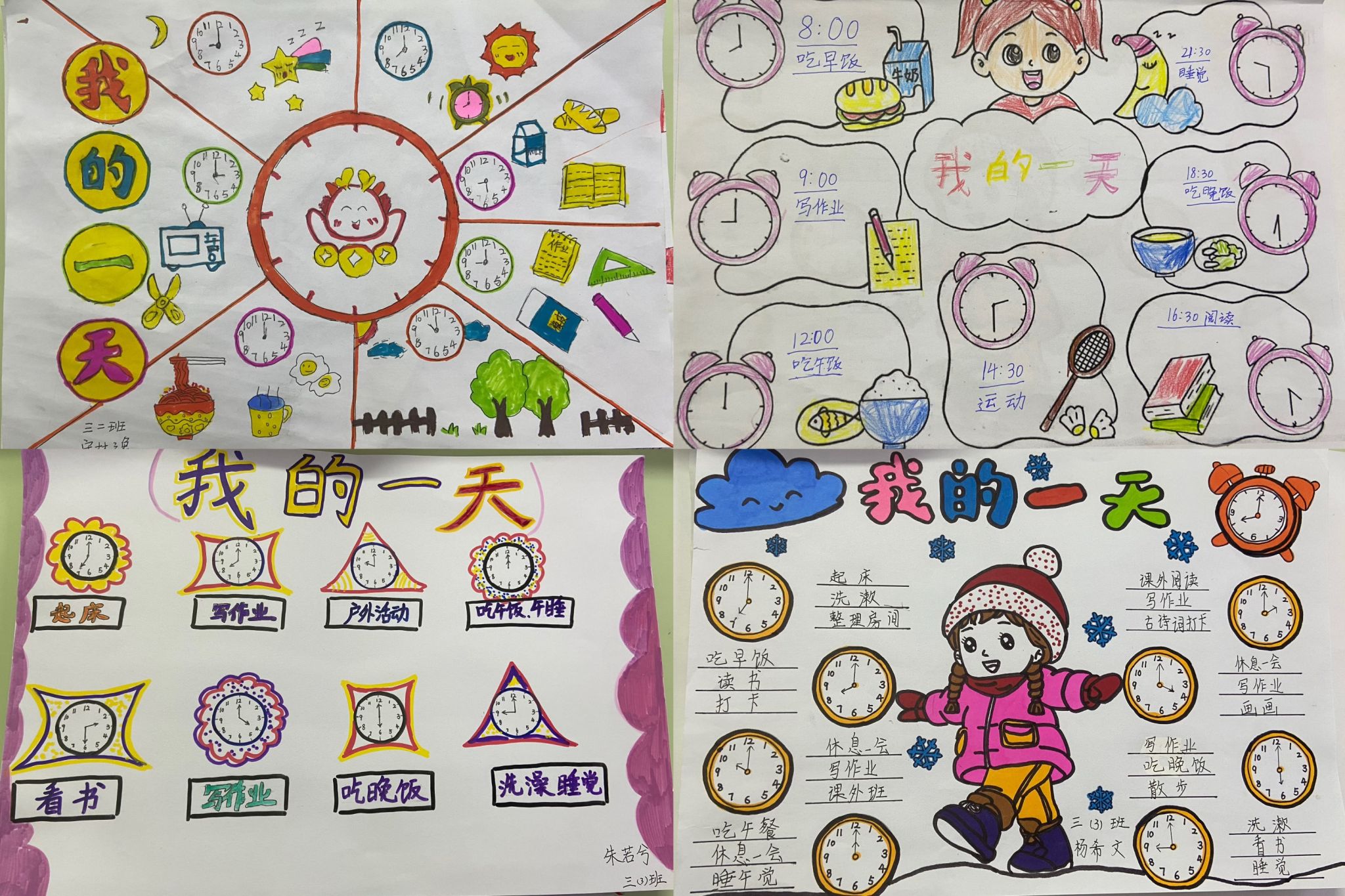 在“我的一天”创作中,孩子们运用钟面时间知识记录有趣的寒假生活,数学与美术碰撞出火花,一幅幅精美的作品反映出孩子们不同的特点和思维。
